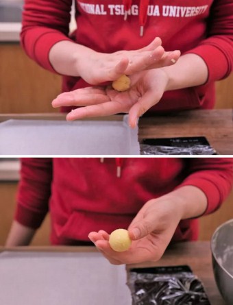 将电子秤包好一层保鲜膜,称取大约8g一颗揉圆