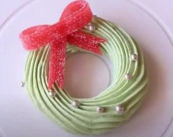 (裱花嘴:5、6、8、10、12齿皆可,约可做25~30个圣诞树或花环)