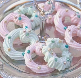 烘烤时间依照蛋白霜挤出的厚度而有不同,需以100度以下温度烘烤,圣诞树约2-3小时,圣诞花环约1小时,烤至蛋白糖底部完全干燥可轻易取下为止,如果仍湿粘需继续烤至干燥即可!