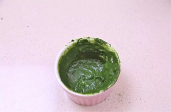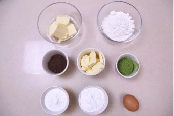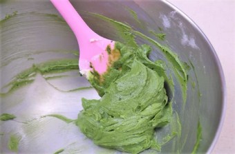 ③抹茶酱加入黄油中用刮刀搅拌均匀