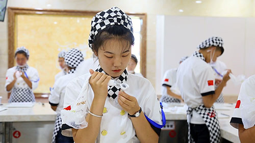 经典西点专业。她说:“自己从小就喜欢吃甜点,路过甜品店总要进去逛一逛,一直梦想着有一天能拥有自己的甜品店,自己做蛋糕,自己当老板。”她的眼神中流露着对西点的喜爱。来新东方以后,每一天都在学习和实训中度过,课余时间还会来到实训室自己做练习,用心学习的日子让生活过的很精彩,学会一种裱花技巧,完成一个卡通蛋糕,烘焙出香甜的面包......逐渐掌握一项项西点技术,也越来越自信迷人的她,让从小和她相伴的闺蜜很是惊喜,原本想学医的闺蜜追随她走上了西点之路。侯超男的到来让两个人约定一起开店的目标更加明确,他们相信和好闺蜜一起努力奋斗的未来一定不会差。